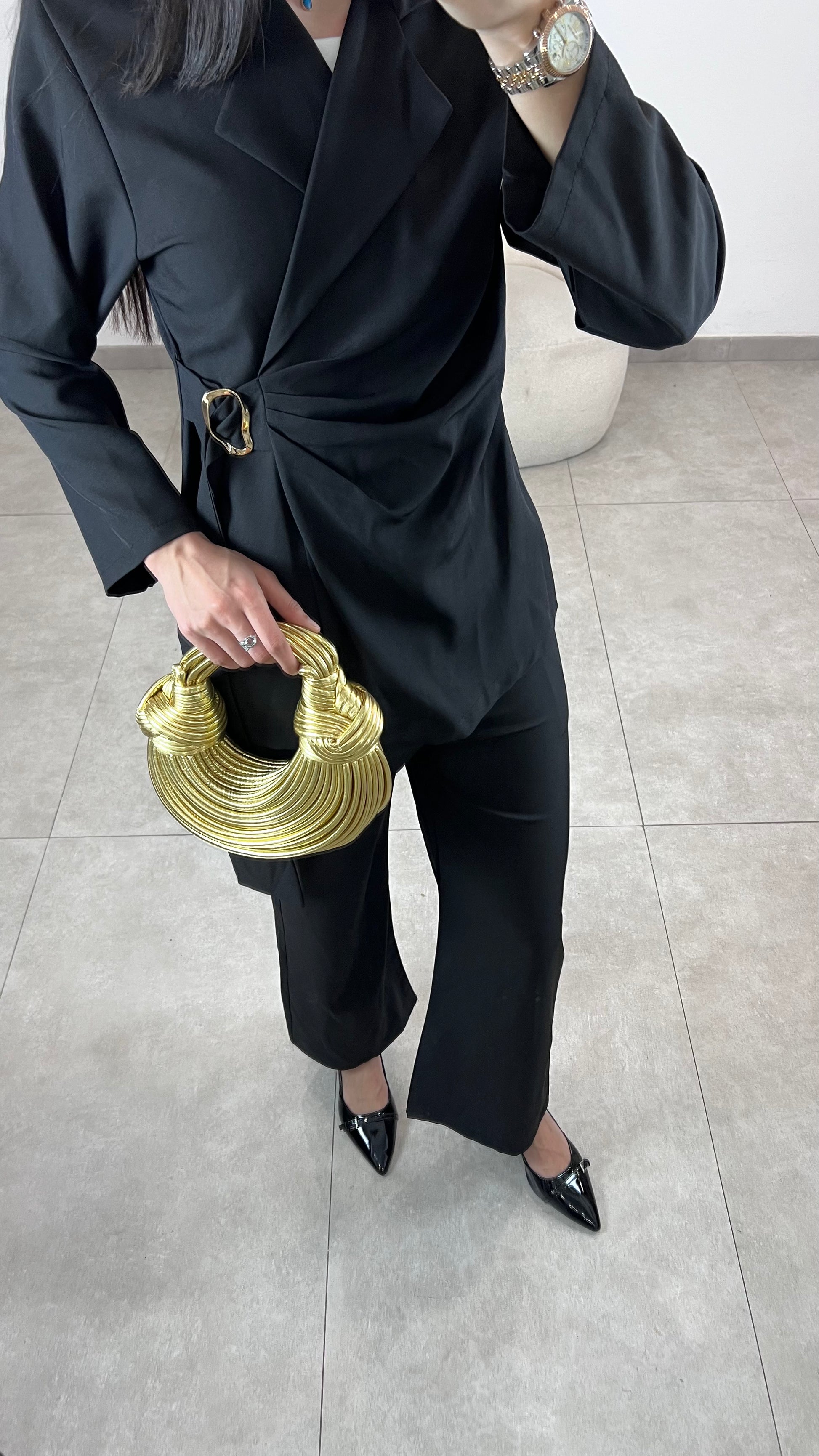 ENSEMBLE CEINTRÉ À BROCHE DORÉ - NOIR