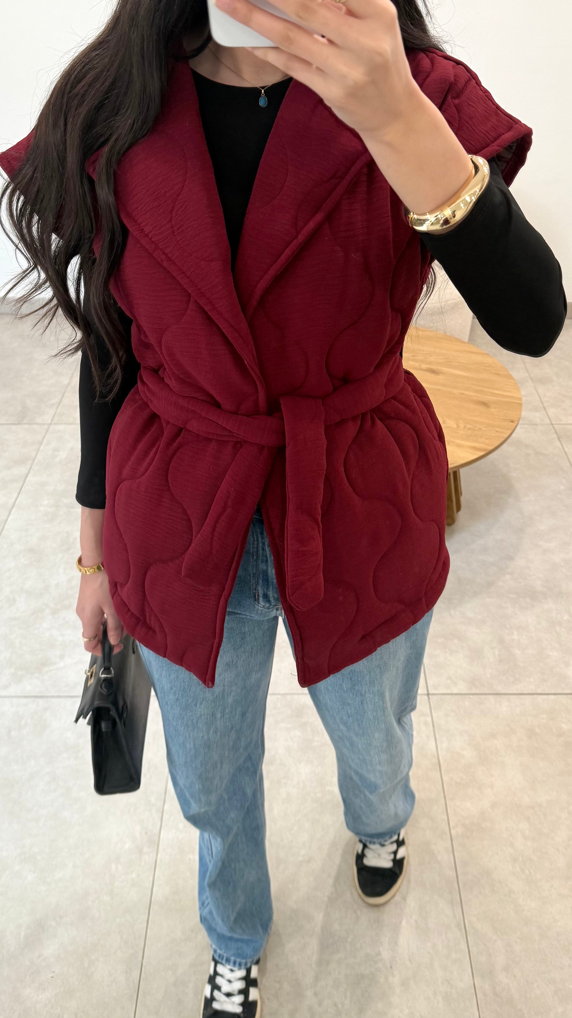 Veste sans manches matelassée de couleur bordeaux,