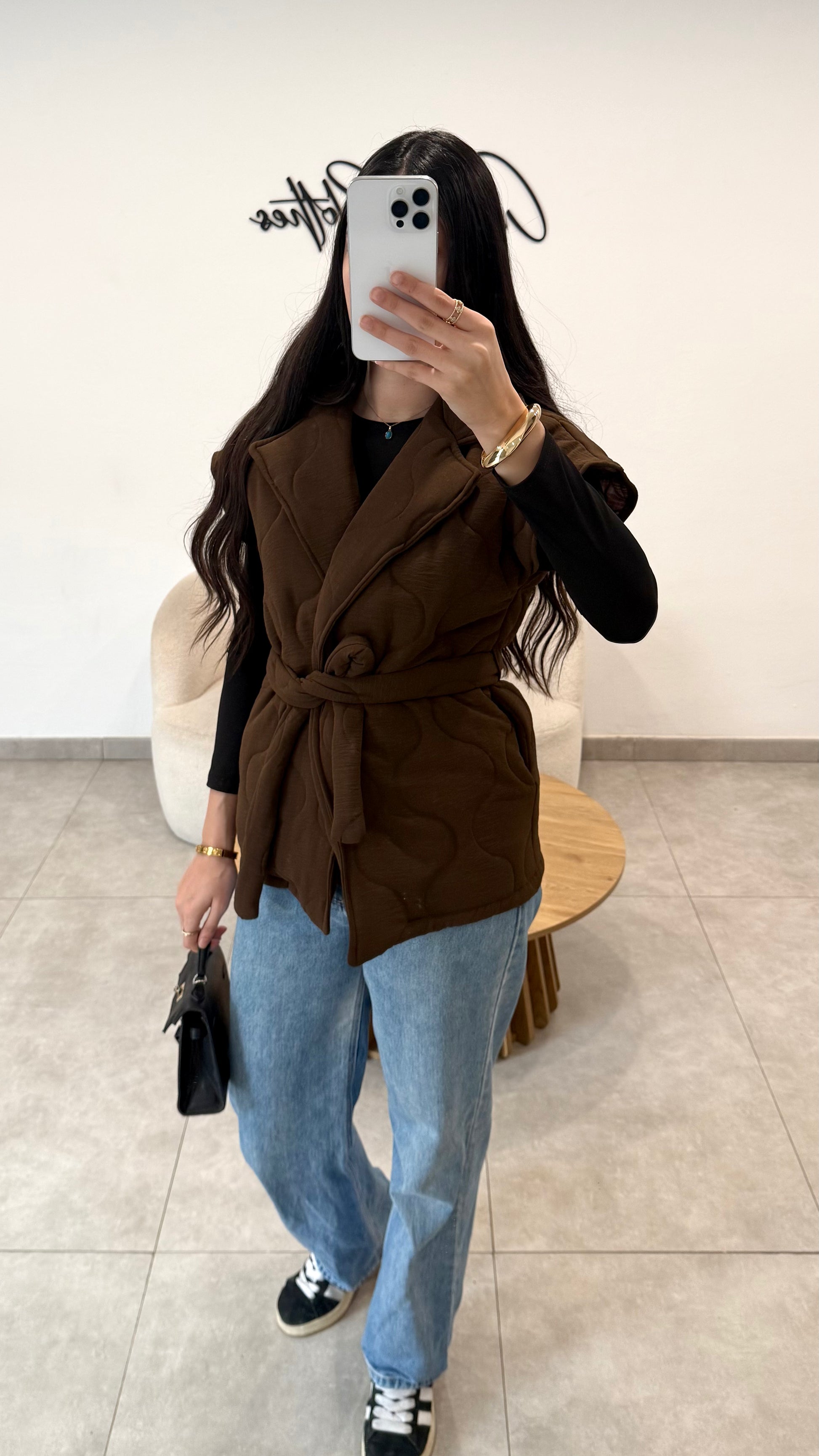 Veste sans manches matelassé marron